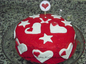 Pasta yapımının detaylarına buradan bakabilirsiniz.Ama bu sefer basit bir pasta tercih etmiştim.Netten bulduğum en kolay pandispanya tarifi ve pasta kremasıyla hazırladım pastayı.Kaplama kremasını pasta kremasını renklendirip hazırladım.Üzerindeki süslemeler şeker hamurunda.Hatta minik kalp kalıbım yoktu da onları da elde kesip şekillendirdim.